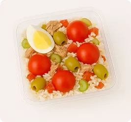 Capable of processing a wide range of products, including hard-to-fill products like cooked pasta, rice, semi-liquids like sauces, and solid foods like breaded cutlets.